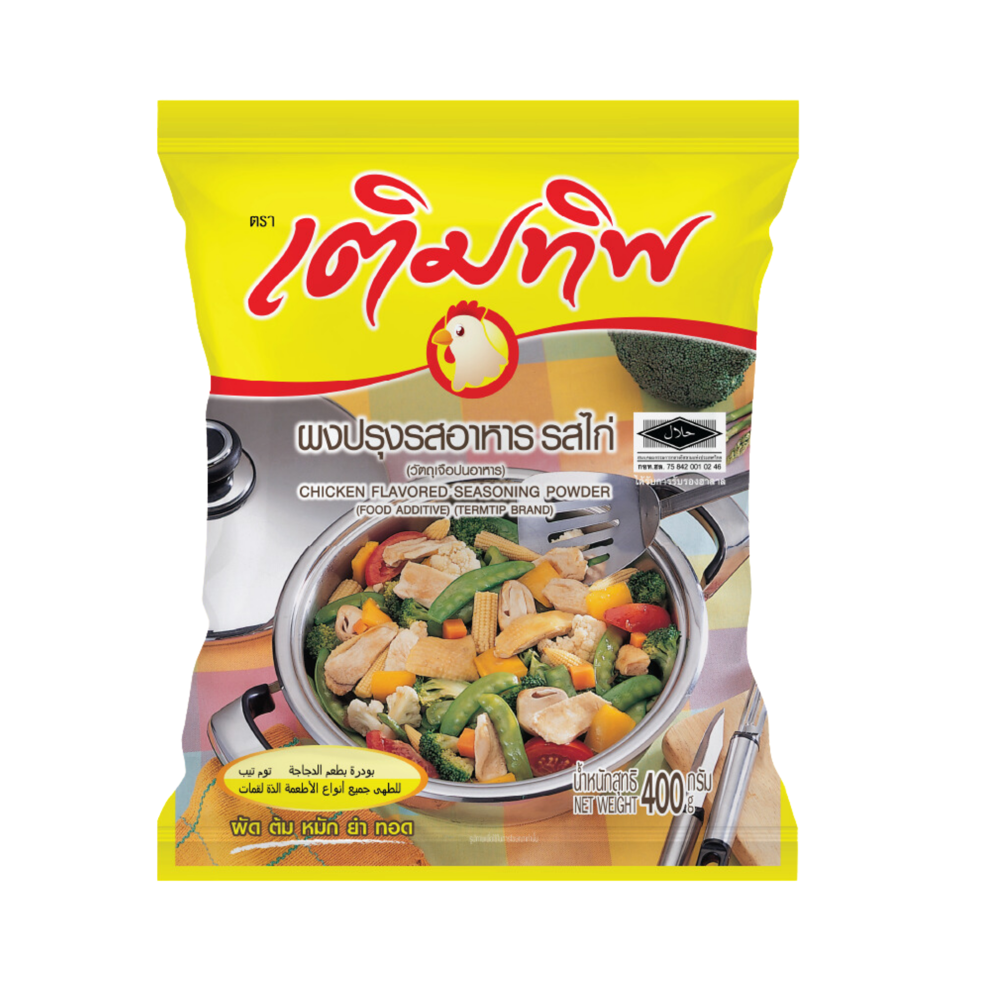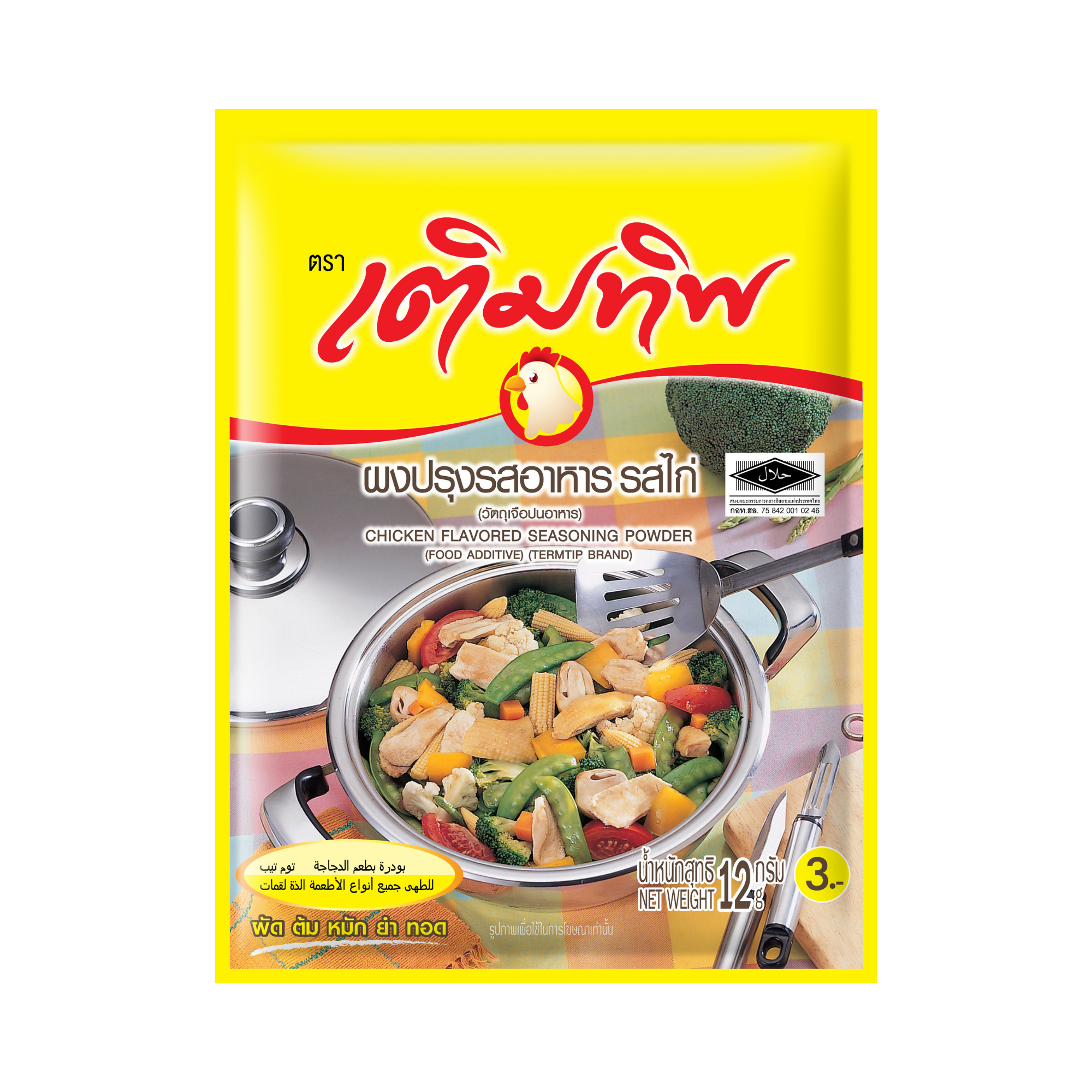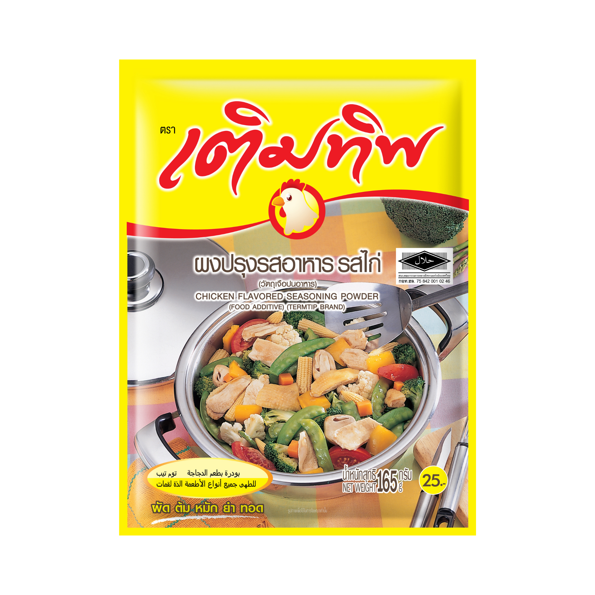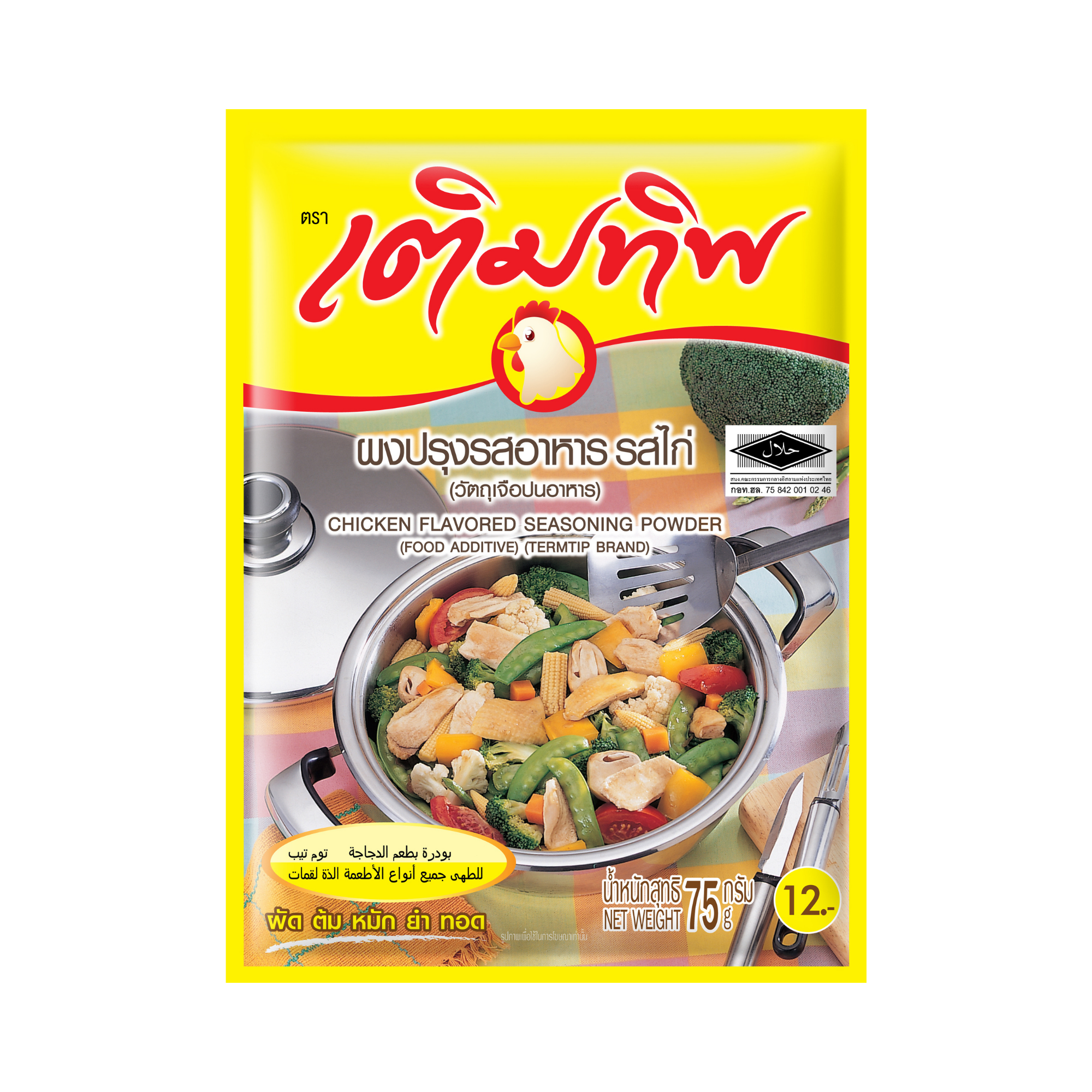 Description : ผงปรุงรสเติมทิพ รสไก่ ช่วยให้อาหารอร่อยกลมกล่อม ทำได้หลากหลายเมนู ทั้งผัด ต้ม หมัก ยำ ทอด ทำจากผงไก่แท้ อร่อยครบรส ได้รับรองมาตรฐานตราฮาลาล สำหรับผู้บริโภคชาวมุสลิมโดยเฉพาะ