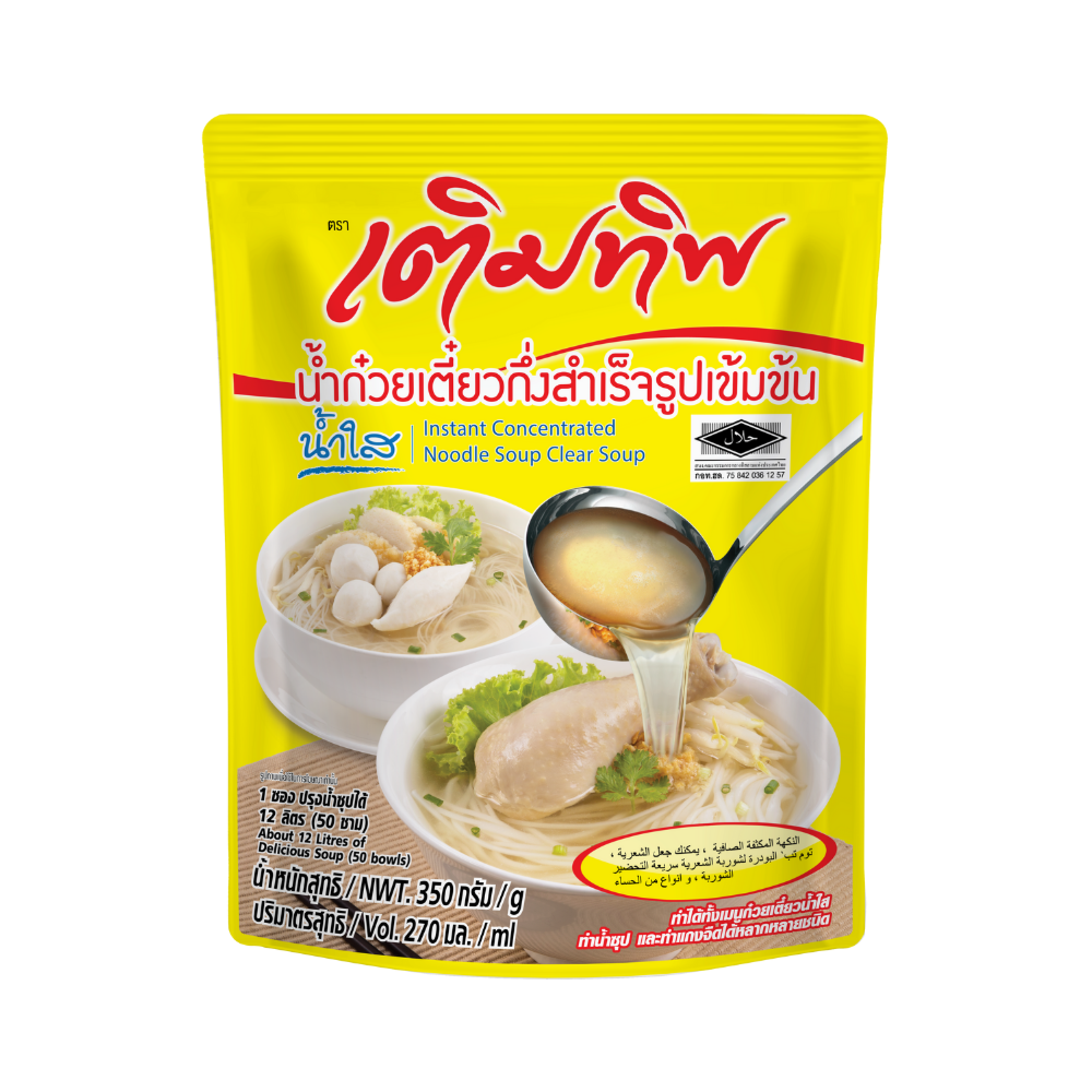 Description : เติมทิพ น้ำก๋วยเตี๋ยวกึ่งสำเร็จรูปเข้มข้น น้ำใส ทำเมนูก๋วยเตี๋ยวน้ำใสได้ทุกเมนู ทั้งก๋วยเตี๋ยวน้ำใส เฝอ ชาบู น้ำซุปสต๊อก วิธีใช้ง่ายมาก เพียงแค่ต้มน้ำให้เดือด เทน้ำก๋วยเตี๋ยวสำเร็จรูปเข้มข้นลงไปในหม้อ คนให้ละลายเข้ากัน ก็จะได้น้ำซุปก๋วยเตี๋ยวที่อร่อยพร้อมเสิร์ฟ โดย 1 ซอง ผสมกับน้ำได้ 12 ลิตร ทำก๋วยเตี๋ยวได้ 50 ชาม จะได้ทั้งความอร่อย สะดวก ประหยัด